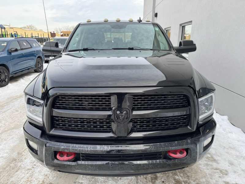 Black Appearance Group Black Power Fold-Away Mirrors Black Ram Head Tailgate Badge 20 X 8.0 Black Painted Aluminum Wheels Black 4x4 Tailgate Badge Body Color Door Handles Bi-Function Black Projector Headlamp Black Wheel Center Hub Painted Front Bumper Painted Rear Bumper LT285/60R20E OWL On/off Road Tires Black Premium Tail Lamp Black Grille Surround with Black Hex Black Painted Exterior Mirrors. Quick Order Package 26H Laramie Front Armrest with Cupholders Storage Tray 3.73 Rear Axle Ratio. Protection Group Tow Hooks Transfer Case Skid Plate Shield. Leather Trimmed Bucket Seats. Uconnect 8.4AN AM/FM/SXM/HD/BT/navigation Radio. Spray in Bedliner. 5th Wheel/gooseneck Towing Prep Group. Center Stop Lamp with Cargo View Camera. Remote Start System. Power Fold Black Trailer Tow Mirror with Memory. Keyless Go. Clearance Lamps. **Equipment listed is based on original vehicle build and subject to change. Please confirm the accuracy of the included equipment by calling the dealer prior to purchase.**
