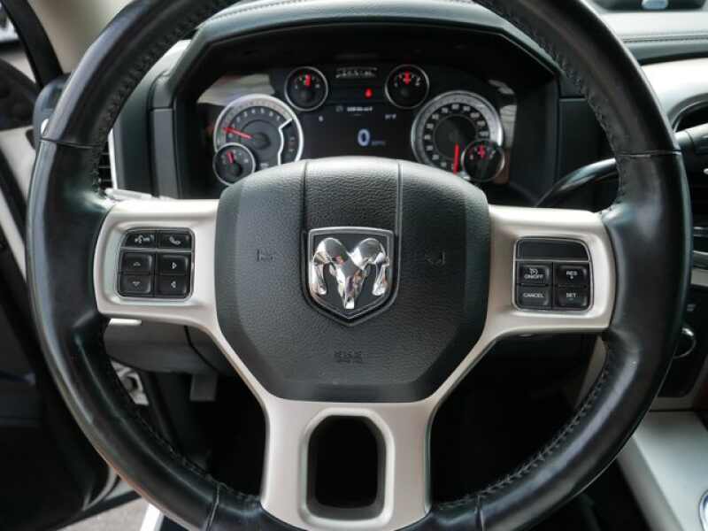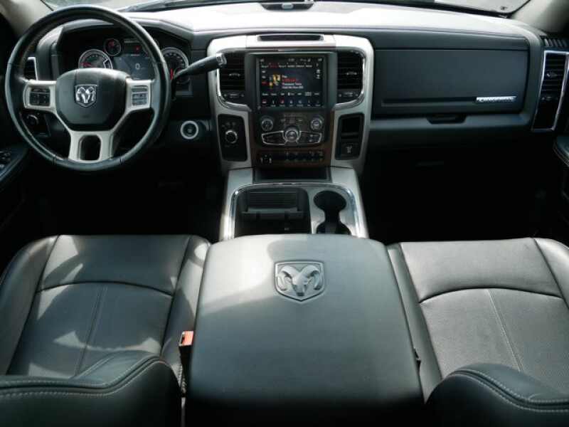 4x4, Back-Up Camera, Trailer Hitch. Privacy Glass, Steering Wheel Controls, Child Safety Locks, Electronic Stability Control, Electrochromic rearview mirror, Brake Assist, 4-Wheel ABS. Ram Laramie with Pearl White exterior and Black interior features a 8 Cylinder Engine with 410 HP at 5600 RPM*.