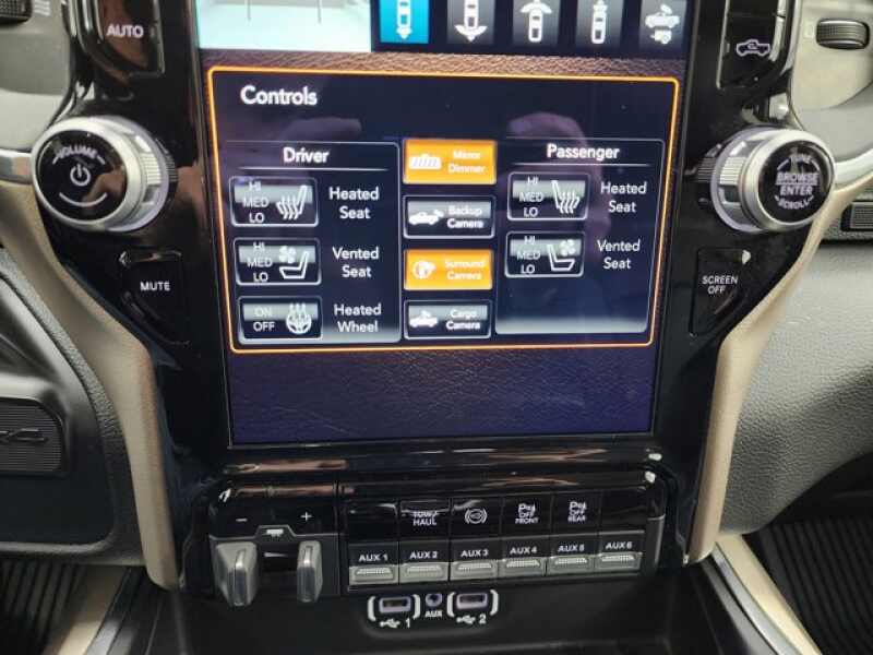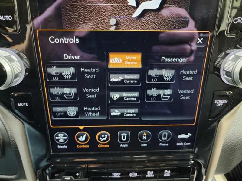 - LARAMIE LEVEL A EQUIPMENT GROUP -inc Mirror-Mounted Aux Reverse Lamps Rain Sensitive Windshield Wipers Power Adjustable Pedals w/Memory Power Chrome Tow Mirrors w/Convex Spotter & Memory Ventilated Front Seats Remote Tailgate Release Auto High Beam Headlamp Control Exterior Mirrors w/Memory Foam Bottle Insert (Door Trim Panel) 2nd Row In Floor Storage Bins Radio/Driver Seat/Mirrors/Pedals Memory Power Adjustable Convex Aux Mirrors