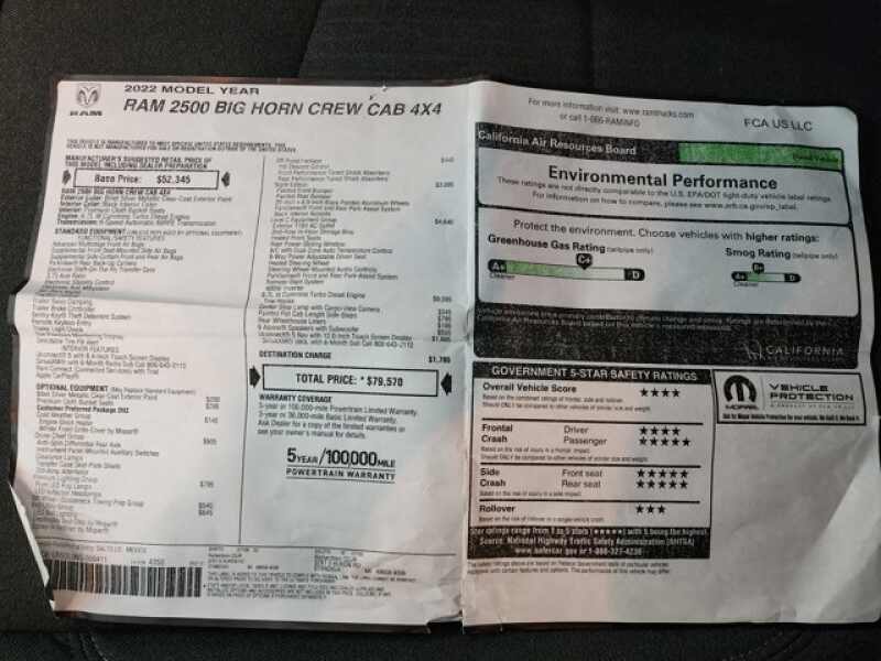 CLEAN AUTOCHECK! Very very clean inside and out! This is one of the sharpest 2022 Ram 2500 crewcab shortbox 3/4 ton diesel trucks on our lot! Make your move before this super clean 4wd is gone!