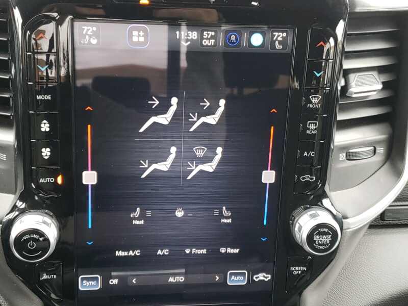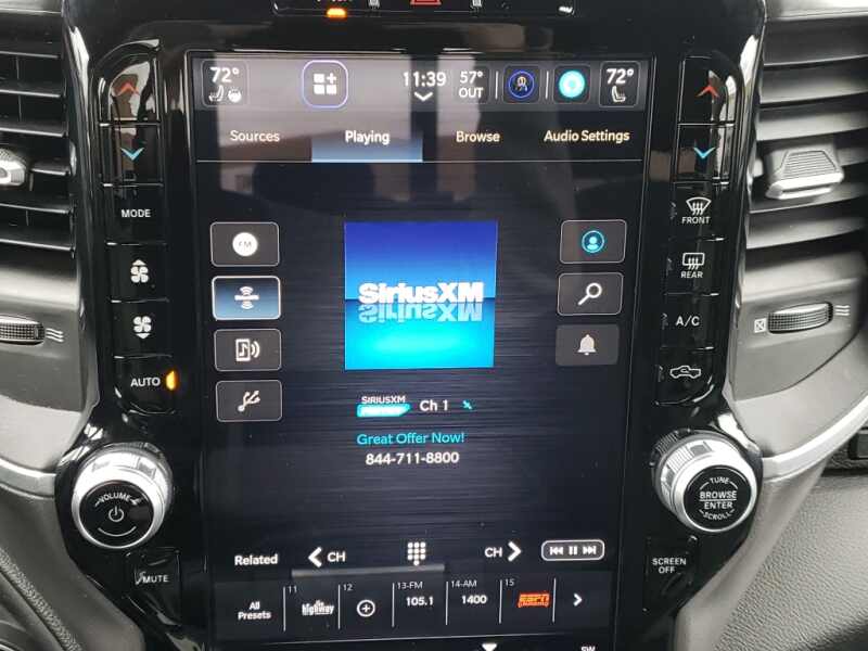 Quick Order Package 2GZ Big Horn. Night Edition. Safety Group Auto High Beam Headlamp Control Rain Sensitive Windshield Wipers Rear View Auto Dim Mirror Adaptive Cruise Control with Stop Adaptive Steering System Full Speed Forward Collision Warning Plus Lane Keep Assist. Bed Utility Group MOPAR Spray in Bedliner MOPAR Deployable Bed Step LED Bed Lighting. Level 2 Equipment Group. Protection Group Tow Hooks Transfer Case Skid Plate Shield. Uconnect 5 Navigation with 12.0 Display Radio. Premium Cloth 40/20/40 Bench Seat. Painted Flat Cab-Length Side Steps. Blind Spot and Cross Path Detection. MOPAR Spray in Bedliner. 9 Alpine Speakers with Subwoofer. Anti-Spin Differential Rear Axle. ParkSense Front/rear Park Assist System. Remote Start System. 115-Volt Auxiliary Front Power Outlet. Front Fog Lamps. Rear Window Defroster. Security Alarm. Tow Hooks. **Equipment listed is based on original vehicle build and subject to change. Please confirm the accuracy of the included equipment by calling the dealer prior to purchase.**