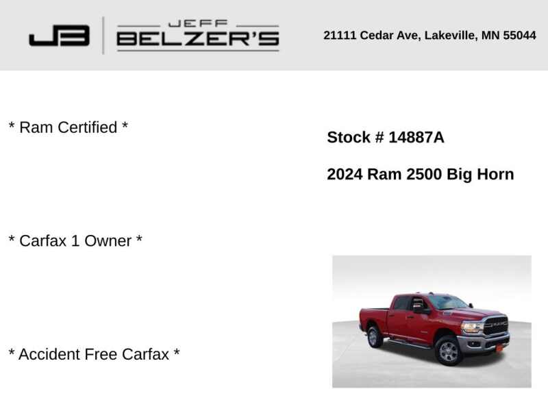 * Ram Certified * Carfax 1 Owner * Accident Free Carfax * 2024 RAM 2500 Big Horn Crew Cab 4x4