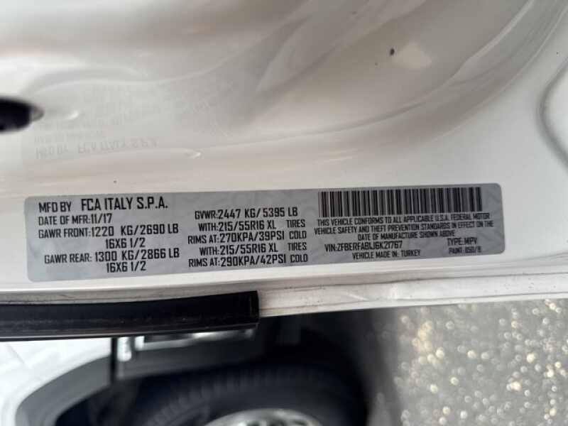 - VIN ZFBERFAB1J6K21767
