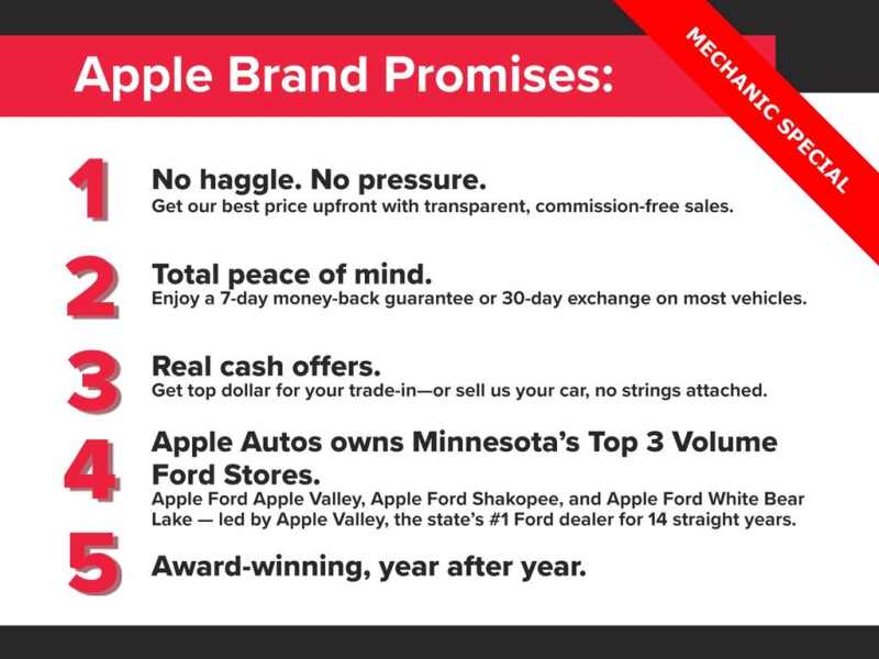 Due to the demand for pre-owned vehicles in this price range, this AS-IS/ Mechanic Special is being sold with NO return or exchange policy. Apple Ford White Bear Lake has zero responsibility for any repairs after the sale. We do appreciate your business, and want to make sure this vehicle is represented for what it is, a Pre-Wholesale vehicle.