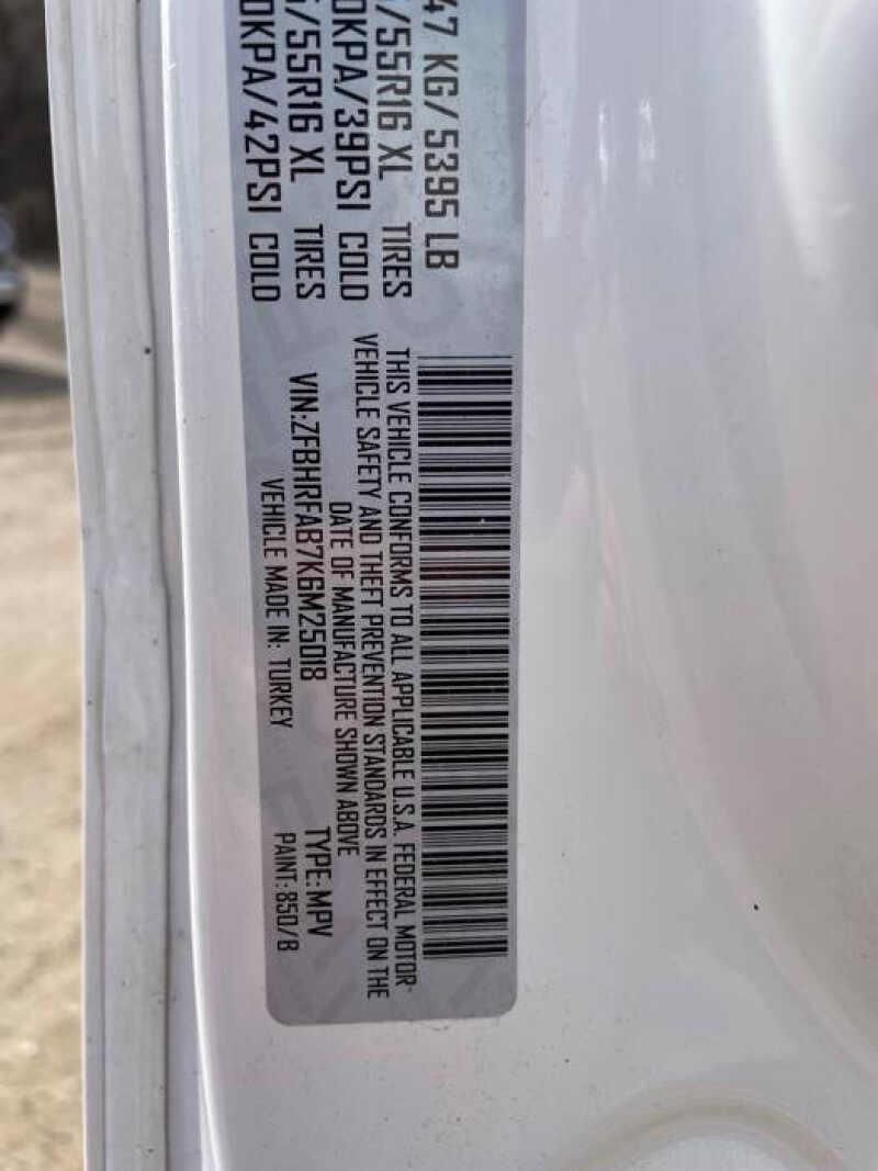 - VIN ZFBHRFAB7K6M25018