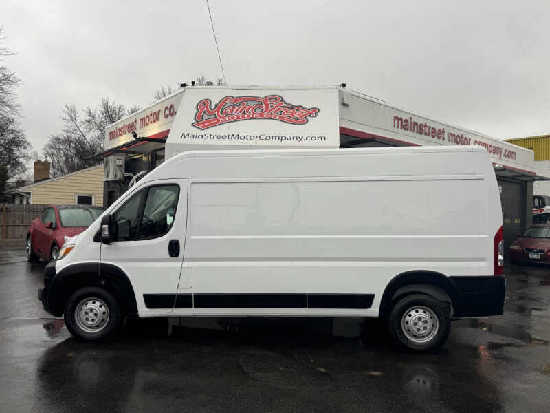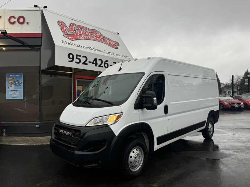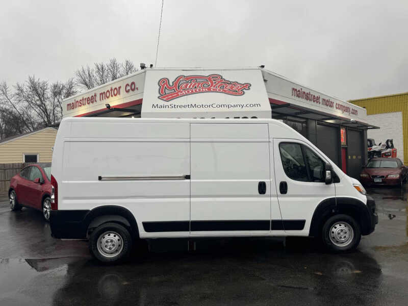 The 2023 RAM ProMaster 2500 159WB is a powerful and versatile cargo van that is perfect for business or work use. This front-wheel-drive van is in almost new condition and comes with a big discount off the window sticker price of $53,345, making it an incredible value. Its still under manufacturer warranty, ensuring you have peace of mind with your purchase. This van has a clean title, no accident history, and is a 1-owner vehicle, meaning it has been well cared for. Featuring keyless entry, cloth seats, and a sliding side door, it provides easy access and comfort for both driver and passengers. With its spacious cargo area, its ideal for hauling equipment, goods, or tools. The Carfax report is available for full transparency, and we offer easy financing options to make your purchase easier. Trades are welcome, and we also offer warranties to ensure your investment is protected. Nationwide shipping is available, so you can take advantage of this great deal no matter where you are located. Visit us today to check out this outstanding 2023 RAM ProMaster 2500 at Mainstreet Motor Co., located at 2021 Mainstreet, Hopkins, MN 55343!