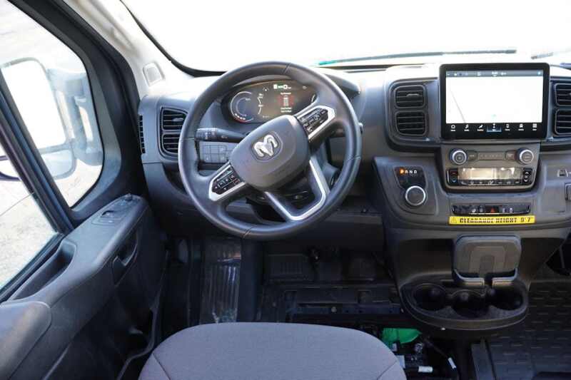 400V 110 kWh Battery Pack * Super High Roof * Supplemental Front Seat Mounted Side Air Bag System * Supplemental Side Curtain Front Air Bag System * Drowsy Driver Detection * Traffic Sign Recognition * Electronic Park Brake * Full Speed Forward Collision Warning Plus * Pedestrian Cyclist Emergency Braking * Multi Collision Braking * Electronic Stability Control * Crosswind Assist * Electronic Roll Mitigation * All Speed Traction Control * Tire Pressure Monitoring Display * Rain Sensitive Windshield Wipers * Push Button Start * Remote Keyless Entry * Ram Connect Connected Services with Trial * Global Telematics Box Module TBM * Door Only Key * Spare Tire Delete * 4 Way Manual Adjustable Driver Seat * Heated Driver Seat * Digital Rearview Mirror * GPS Navigation * SiriusXM 360L * Connected Travel and Traffic Services * Leather Wrapped Steering Wheel * Steering Wheel Mounted Audio Controls * Media Input Hub * Instrument Panel 12 Volt Power Outlet * Passenger Side Pocket Door * Roll Up Rear Door * Wide Power Heated Mirrors * Automatic Headlamps * LED Reflector Headlamps * Front LED Fog Lamps * Rear Cargo LED Lamp * 16 Inch x 6.0 Inch Steel Wheels * LT225/75R16E BSW All Season Tires *