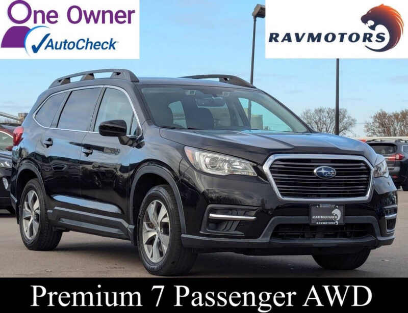 This vehicle is located at our Burnsville store. CLEAN TITLE!! NO ACCIDENTS!! ONE OWNER!! Step into capability, comfort, and confidence with this 2019 Subaru Ascent Premium, the three-row SUV built for families, adventurers, and anyone who wants versatility without compromise. With Subarus legendary Symmetrical All-Wheel Drive and a turbocharged engine that delivers both power and efficiency, the Ascent Premium provides a smooth, secure, and responsive drive in all conditionsfrom daily errands to weekend getaways. Inside, youll find an inviting cabin with spacious seating for up to seven, high-quality materials, and smart features like an intuitive touchscreen infotainment system, Apple CarPlay and Android Auto integration, and multiple USB ports to keep everyone connected. Thoughtful touches such as adjustable rear climate controls, abundant cupholders, and flexible cargo space make every trip easier, while advanced safety featuresthanks to Subarus EyeSight driver-assist technologyoffer peace of mind on every mile. If youre looking for a modern, reliable SUV that blends comfort, practicality, and rugged capability, this 2019 Subaru Ascent Premium stands out as the ideal choice. Stop by RAVMOTORS to test drive this car. Well be more than happy to help you find the right car at the right price. We don't have any pushy or high-pressure salespeople. So come in and see for yourself why we have been the #1 DealerRater used car dealership of the year 5 years in a row. Extended Warranties and Financing options are available. Call us for vehicle availability at 952-456-4041 or email us at ravmotorsinfogmail.com. For more information and a full inventory visit us at www.ravmotors.com. We are open Monday Thursday 10 am 7 pm, Friday - Saturday 930 am 6 pm.