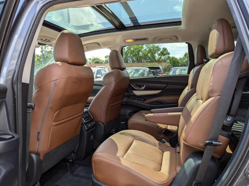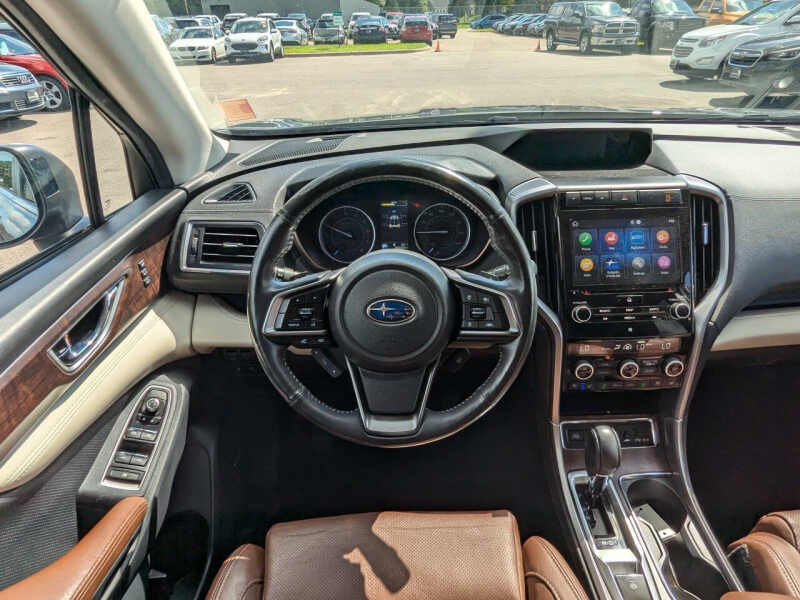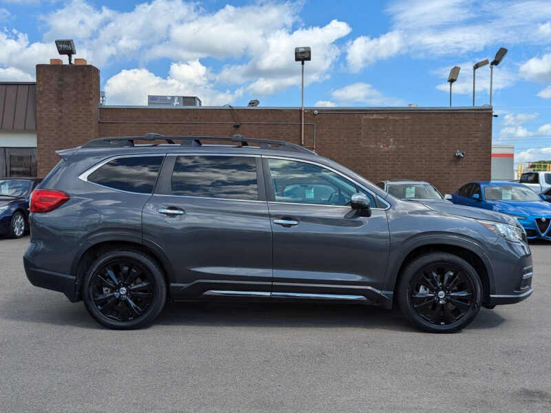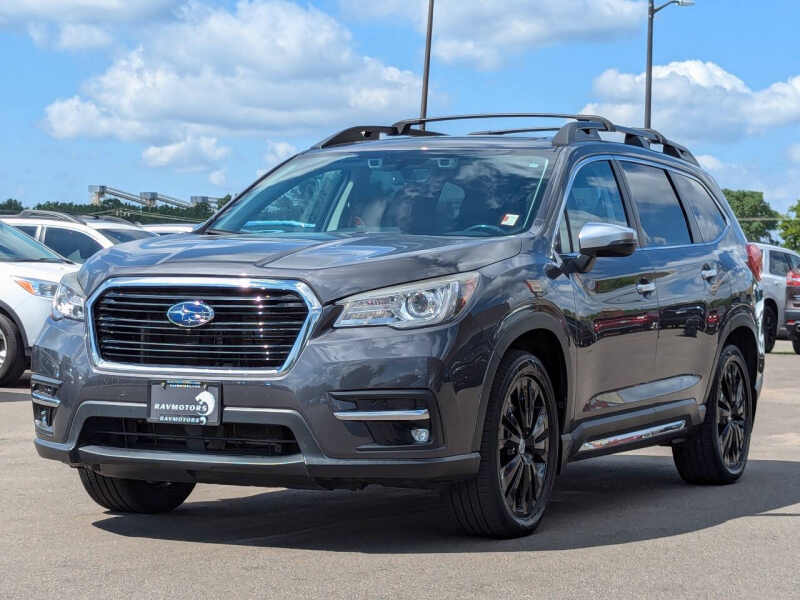 This vehicle is located at our Burnsville store. ONE OWNER!! CLEAN TITLE!! Meet the 2019 Subaru Ascent Touring AWDthe ultimate blend of safety, space, and sophistication in a family-sized SUV built for adventure. As Subarus largest vehicle, the Ascent Touring offers three rows of refined comfort with seating for up to seven, featuring premium touches like perforated leather-trimmed upholstery, heated and ventilated front seats, heated second-row captains chairs, a heated steering wheel, and even heated third-row seats to keep everyone cozy. Under the hood, the turbocharged 2.4L BOXER engine paired with Subarus legendary Symmetrical All-Wheel Drive delivers confident traction, smooth power, and impressive towing capacity, making it ideal for road trips, mountain getaways, or everyday errands. The Touring trim brings top-tier luxury and technology, including a massive panoramic moonroof, a Harman Kardon premium audio system, integrated navigation, and an 8-inch STARLINK touchscreen with Apple CarPlay and Android Auto. Safety is paramount, with Subarus EyeSight Driver Assist Technology offering adaptive cruise control, lane keep assist, pre-collision braking, and moreplus blind-spot detection and rear cross-traffic alert for added peace of mind. With its spacious interior, smart storage, and rugged capability, the 2019 Ascent Touring AWD is the perfect SUV for families who dont want to compromise on comfort, safety, or performance. Stop by RAVMOTORS to test drive this car. Well be more than happy to help you find the right car at the right price. We don't have any pushy or high-pressure salespeople. So come in and see for yourself why we have been the #1 DealerRater used car dealership of the year 5 years in a row. Extended Warranties and Financing options are available. Call us for vehicle availability at 952-456-4041 or email us at ravmotorsinfogmail.com. For more information and a full inventory visit us at www.ravmotors.com. We are open Monday Thursday 10 am 7 pm, Friday - Saturday 930 am 6 pm.