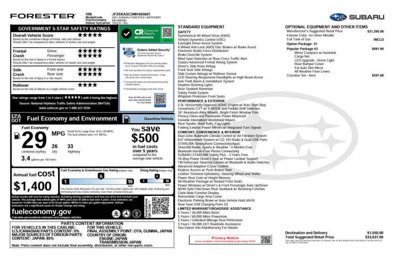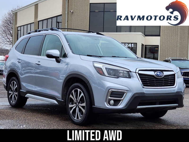 Available at our Crystal location, Experience the perfect blend of capability and refinement in this stunning 2021 Subaru Forester Limited AWD, designed to master ever-changing seasons with ease. Powered by a reliable 2.5L H4 engine, this SUV offers a smooth, responsive drive while maintaining an impressive 33 HWY MPG for maximum efficiency on every trip. Subarus legendary Symmetrical All-Wheel Drive provides unparalleled traction and peace of mind, whether you're navigating heavy winter snow or a summer rainstorm. The premium Limited trim elevates every journey with luxurious leather-trimmed upholstery, a massive panoramic power moonroof, and the effortless convenience of a power rear gate. You'll drive with total confidence thanks to the award-winning EyeSight Driver Assist Technology and an intuitive touchscreen that keeps your navigation and music at your fingertips. With its world-class safety ratings and versatile cargo space, this Forester Limited is the high-quality, dependable SUV youve been searching for. Come on down to RavMotors of Crystal to test-drive our cars! We'll be happy to help you find the right car at the right price. Call for vehicle availability at 763-401-4242 or email us at ravmotorsofcrystalgmail.com. Make sure to check out our inventory at www.ravmotors.com We stand behind all of our cars. We are open from 1000 AM - 700 PM on Monday-Thursday and 1000 AM - 600 PM on Friday-Saturday.