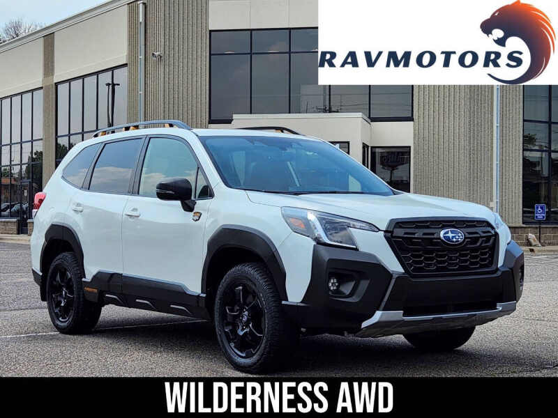 Available at our Crystal location, Answer the call of adventure with this rugged and capable 2022 Subaru Forester Wilderness AWD 4dr Crossover. Built for exploring the wilder side of the city and beyond, this Forester trim takes Subaru's legendary go-anywhere capability to the next level, without compromising everyday comfort. Under the hood, the robust 2.5-liter Horizontally Opposed engine provides reliable power for all your journeys, while still achieving an impressive estimated 28 MPG on the highway. What truly sets the Wilderness apart is its enhanced off-road prowess. It boasts increased ground clearance, re-tuned suspension for improved articulation, and a more aggressive X-MODE system for tackling challenging terrain with ease. Visually, the Wilderness stands out with its distinctive styling cues, including matte black anti-glare hood decal, unique hexagonal LED fog lights, rugged body cladding, and bold 17-inch matte black wheels wrapped in all-terrain tires. The Anodized Copper-finish accents inside and out subtly hint at its adventurous spirit, while integrated roof rail tie-down points make it easy to secure extra gear. Inside, the cabin features water-repellent StarTex upholstery, perfect for muddy boots or wet gear after a day outdoors. Comfort remains paramount with heated front seats and a spacious interior for both passengers and cargo. The intuitive SUBARU STARLINK Multimedia system keeps you connected and entertained, with Apple CarPlay and Android Auto integration. And for ultimate peace of mind, Subaru's comprehensive EyeSight Driver Assist Technology comes standard, providing advanced safety features to help you navigate confidently wherever your adventures lead. If you're seeking a supremely capable, purpose-built crossover thats ready for any challenge and looks the part, this 2022 Subaru Forester Wilderness AWD is your ideal companion. We'll be more than happy to help you find the right car at the right price. Come on down to RavMotors of Crystal to test-drive our cars! Call for vehicle availability at 763-401-4242 or email us at ravmotorsofcrystalgmail.com. Make sure to check out our inventory at www.ravmotors.com We stand behind all of our cars. We are open 1000 AM - 700 PM on Monday-Thursday and 1000 AM - 600 PM on Friday-Saturday.