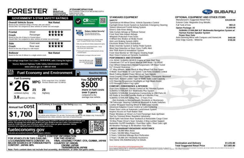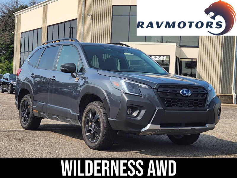 This vehicle is located at our Crystal location. This is the 2023 Subaru Forester Wilderness, it is a great rugged vehicle with a beautiful gray exterior. This Forester is the perfect SUV for your off-roading adventures! With its AWD, you won't have to worry when going through the snow. It includes a reliable CVT transmission, up to 28 MPG on the highway, Bluetooth, a backup camera, a beautiful panoramic sunroof, Subaru's EyeSight package, heated seating, navigation, harman/kardon sound system, a power liftgate, X-mode, and so much more! Make sure to not miss out on this great deal at RavMotors of Crystal! Come on down to RavMotors of Crystal to test-drive our cars! We'll be happy to help you find the right car at the right price. Call for vehicle availability at 763-401-4242 or email us at ravmotorsofcrystalgmail.com. Make sure to check out our inventory at www.ravmotors.com We stand behind all of our cars. We are open from 1000 AM - 700 PM on Monday-Thursday and 1000 AM - 600 PM on Friday-Saturday.