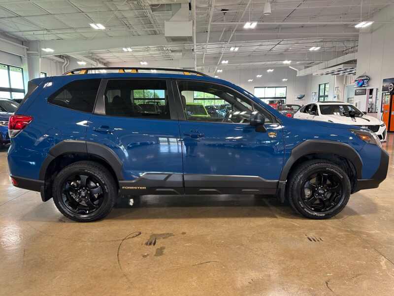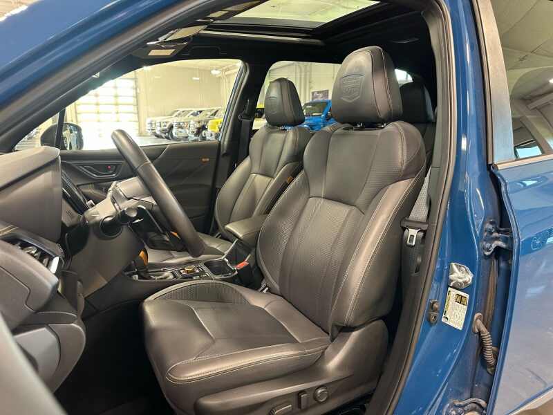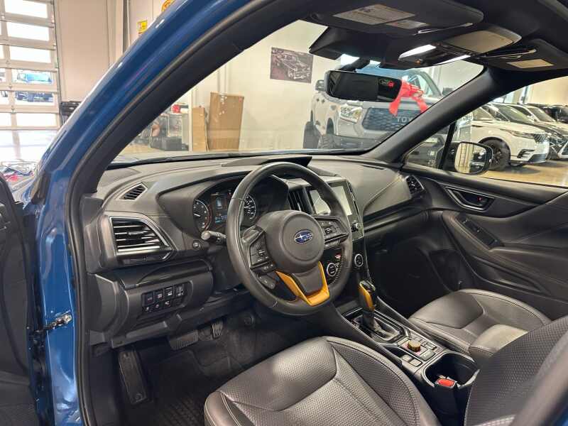 2024 Subaru Forester Wilderness STARLINK 8 Multimedia Navigation w/Harmon Kardon Speaker System, Panoramic Poer Sunroof, Geyser Blue / Gray Premium Leather Interior, 4D Sport Utility AWD Lineartronic CVT 2.5L 4-Cylinder DOHC 16V 4-Wheel Disc Brakes, 4.11 Axle Ratio, 8 Audio w/harman/kardon & Power Rear Gate, ABS brakes, Air Conditioning, Alloy wheels, AM/FM radio SiriusXM, Anti-whiplash front head restraints, Auto High-beam Headlights, Automatic temperature control, Brake assist, Bumpers body-color, Driver door bin, Driver vanity mirror, Dual front impact airbags, Dual front side impact airbags, Electronic Stability Control, Emergency communication system STARLINK Safety and Security (Subscription Required), Exterior Parking Camera Rear, Four wheel independent suspension, Front anti-roll bar, Front Bucket Seats, Front Center Armrest, Front dual zone A/C, Front fog lights, Front reading lights, Fully automatic headlights, harman/kardon 9-Speaker Audio System, Heated door mirrors, Heated Front Bucket Seats, Heated front seats, Illuminated entry, Knee airbag, Leather Shift Knob, Leather steering wheel, Low tire pressure warning, Occupant sensing airbag, Outside temperature display, Overhead airbag, Overhead console, Panic alarm, Passenger door bin, Passenger vanity mirror, Power door mirrors, Power driver seat, Power moonroof Panoramic, Power Rear Gate, Power steering, Power windows, Radio data system, Radio Subaru STARLINK 8.0 Multimedia Nav System, Radio Subaru STARLINK 8.0 Multimedia Plus System, Rear anti-roll bar, Rear seat center armrest, Rear window defroster, Rear window wiper, Remote keyless entry, Roof rack rails only, Security system, Speed control, Speed-sensing steering, Split folding rear seat, Spoiler, STARLINK/Apple CarPlay/Android Auto, Steering wheel mounted audio controls, Tachometer, Telescoping steering wheel, Textured StarTex Upholstery, Tilt steering wheel, Traction control, Trip computer, Turn signal indicator mirrors, Variably intermittent wipers, Wheels 17 x 7.0 J Matte Black Finish Alum-Alloy.