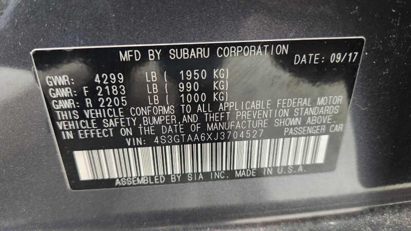 - VIN 4S3GTAA6XJ3704527