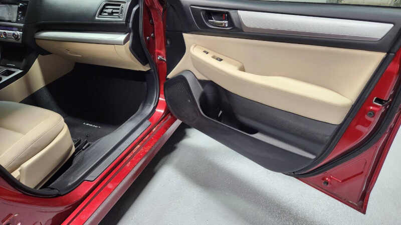 Get ready to hit the road in style with this sleek Burgundy 2015 Subaru Legacy! This versatile sedan is perfect for families with its top-notch safety features including multiple airbags, traction control, and a vehicle stability control system. The little ones will be secure with child safety door locks, while you can enjoy the convenience of power door locks and keyless entry.With separate climate controls, front heated seats, and a CD player, everyone will stay comfortable and entertained on long drives. The automatic headlights and daytime running lights ensure maximum visibility, while the alloy wheels give this Legacy a sporty edge.But that's not all - this car has a Carfax report available, so you can purchase with confidence knowing the vehicle's history. Whether you're heading out on a road trip or just running errands around town, this Subaru Legacy is the perfect combination of safety, comfort, and style. Don't miss out on this fantastic opportunity to own a reliable and stylish sedan! THIS VEHICLE HAS A DAMAGE DISCLOSED TITLE.