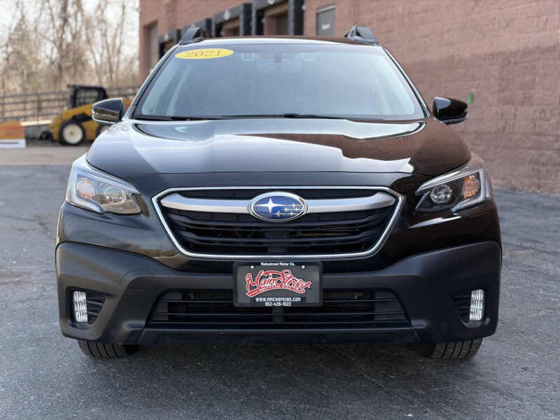 This 2021 Subaru Outback Premium AWD is a well-maintained, versatile crossover with a sleek black exterior and a clean title, backed by a two-owner history and 82,169 miles. Powered by a reliable 2.5L H4 engine paired with a smooth CVT 8-speed transmission, this all-wheel-drive Outback delivers confident performance in all conditions. Inside, youll find a comfortable grey cloth interior equipped with heated seats, steering wheel-mounted controls, Apple CarPlay and Android Auto integration, and a rearview camera for added convenience and safety. Additional features such as a power liftgate, follow distance monitor, durable rubber floor mats, Subaru alloy wheels, and a trailer hitch make this vehicle both practical and road-trip ready. Available now at our Hopkins dealership, we welcome trade-ins, offer extended warranty options, and provide nationwide shipping for your conveniencecall us today at 952-426-1522 to learn more or schedule a test drive.