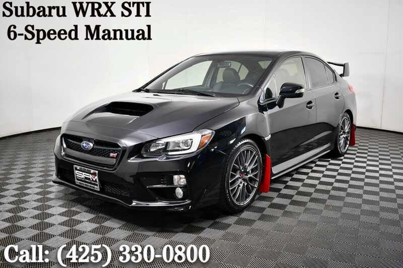 Our 2015 Subaru WRX STI Sedan is presented in Crystal Black Silica and has been carefully crafted for you. Powered by a TurboCharged 2.5 Liter 4 Cylinder offering 305hp paired with a fun-to-drive 6 Speed Manual transmission. This sure-footed All Wheel Drive WRX can sprint to 60mph in an astonishing 5.1 seconds while rewarding you with nearly 23mpg on the highway! Add front and rear limited-slip differentials, driver-selectable modes for the center differential, aggressively tuned suspension, and rear stabilizer bars. You have a machine built for fun that looks amazing with 18-inch alloy wheels, a sunroof, and rear spoiler, that accentuate our WRX's bold, athletic stance. Inside our STI, supportive sports seats provide all-day comfort. You'll appreciate the convenience of full power accessories, automatic climate control, heated front seats, 60/40 split-folding rear seats, and a leather-wrapped steering wheel. The WRX STI also includes Bluetooth connectivity, a central display, a rearview camera, full-color navigation, and a great sound system with an iPod hookup so your tunes can accompany you everywhere you want to go. Safety is crucial to Subaru packed with features from ABS to airbags, All Wheel Drive to a Solid Build. Every day is an adventure with your WRX STI Sedan! Save this Page and Call for Availability. We Know You Will Enjoy Your Seattle Finest Motors Test Drive Towards Ownership! . All prices are exclusive of government fees and taxes, finance charges, dealer documentation fees, and any emission testing charges. A theft recovery device is installed in all our vehicles, and there is an additional cost for this feature. The interior/exterior protection plan is applied to some of our vehicles, and additional fees will apply. The listed price for vehicles does not include additional charges such as license, title, registration fees, state or local taxes, smog fees, credit investigation fees, optional credit insurance, physical damage or liability insurance, or delivery fees. While we try to make sure that all prices posted here are accurate at all times, we cannot be responsible for typographical and other errors, Including those related to the vehicle option list that may appear on the site.We strongly recommend verifying all details indepently. We make every effort to provide you the most accurate, up-to-the-minute information however it is your responsibility to verify with the Dealer that all details listed are accurate. We are not responsible for the accuracy of information reported by third-party platforms like Carfax or Autocheck. Please be aware that advertised prices and available quantities are subject to change without notice. All rates and offers are dependent on bank approval, which can vary based on your credit and the vehicle. . Advertised prices and available quantities are subject to change without notice. All rates and offers are dependent on bank approval, which varies based on applicant's credit as well as the vehicle.