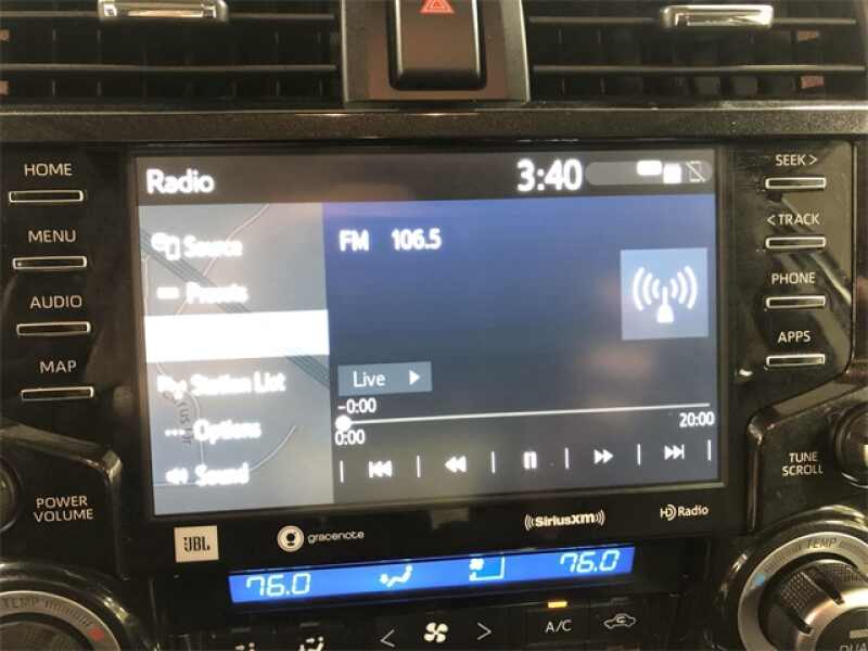 This Toyota 4Runner is well equipped and includes these features and benefits, ONE Owner Per AUTO CHECK History Report, Clean Auto Check History Report, Apple CarPlay/Android Auto, Automatic temperature control, Black Power Heated Mirrors, Black Roof Rails, Exterior Parking Camera Rear, Fully automatic headlights, Garage Door Opener, Heated/Ventilated Front Bucket Seats, Memory seat, Moonroof w/Tilt Up & Slide, Navigation System, Nightshade Edition, Nightshade Leather Seat Trim, Power driver seat, Radio Premium JBL Audio w/Navigation, Right & Left Individual Air Conditioner, Wheels 20 Black Alloy, Wireless Smart Entry Door Lock.