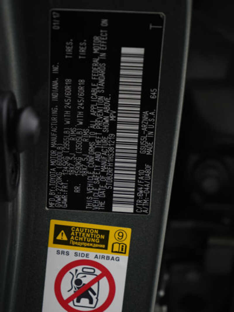 - VIN 5TDBZRFH1HS381219