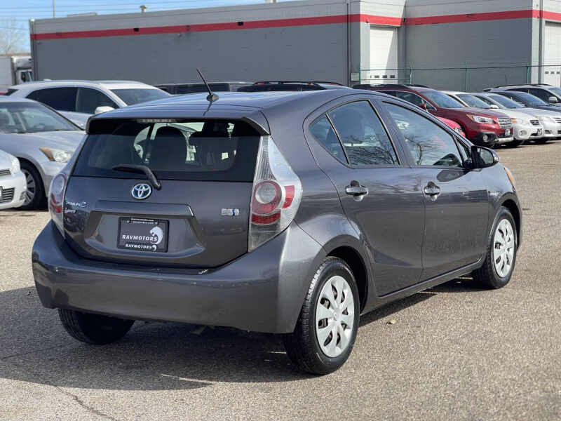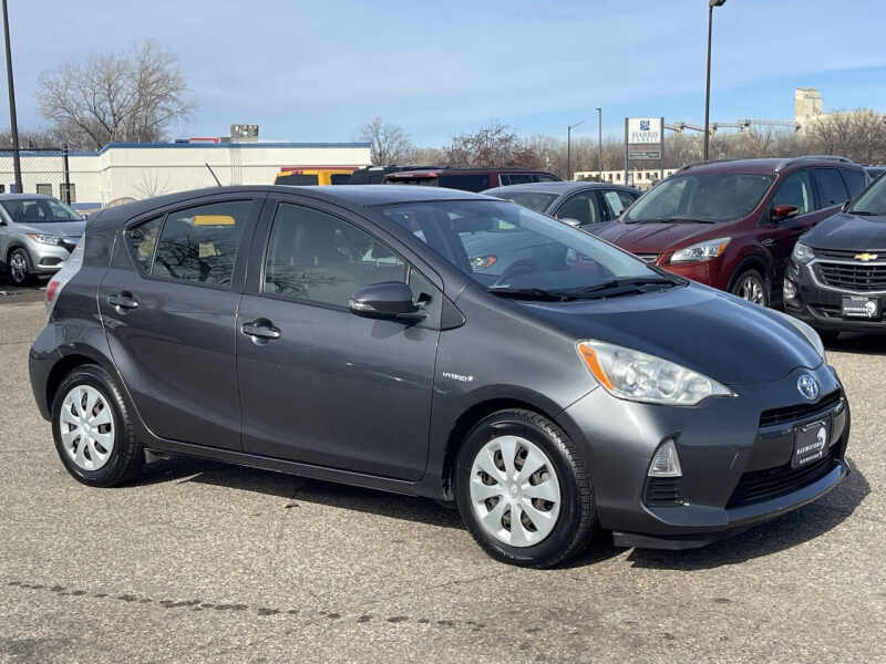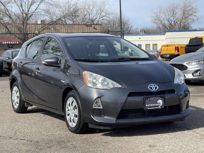 This vehicle is located in our Burnsville store. CLEAN TITLE! FRESH OIL CHANGE!! The 2012 Toyota Prius C Two is a fuel-efficient and compact hybrid hatchback designed for urban driving. Powered by a 1.5L hybrid engine, it delivers excellent fuel economy while maintaining a smooth and reliable performance. The Two trim includes automatic climate control, and a six-speaker audio system. With a practical and spacious interior, versatile cargo space, and Toyotas reputation for reliability, the Prius C Two is a great choice for those seeking an eco-friendly and budget-conscious vehicle. Stop by RAVMOTORS to test drive this car. Well be more than happy to help you find the right car at the right price. We don't have any pushy or high-pressure salespeople. So come in and see for yourself why we have been the #1 DealerRater used car dealership of the year 5 years in a row. Extended Warranties and Financing options are available. Call us for vehicle availability at 952-456-4041 or email us at ravmotorsinfogmail.com. For more information and a full inventory visit us at www.ravmotors.com. We are open Monday Thursday 10 am 7 pm, Friday - Saturday 930 am 6 pm.