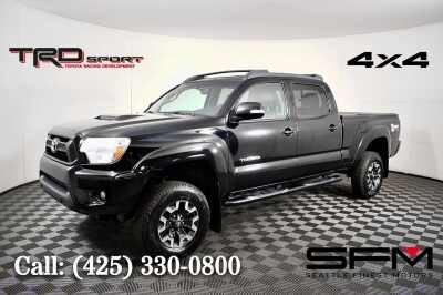 Our athletic low mile 2012 Toyota Tacoma Double Cab 4X4 shown in Black has been described as a muscle truck meets sports car. Powered by a 4.0 Liter V6 that offers 236hp paired to a 5 Speed Automatic transmission. This Four Wheel Drive scores nearly 21mpg on the road, making the Tacoma more nimble than some sports cars. You can quickly push the Tacoma to its limits with confidence! Our Tacoma shows off the 16-inch alloy wheels that accent the head-turning stance of this truck. You'll appreciate a composite bed-liner and a bed utility rail system. Once inside our Tacoma, you'll notice upgraded seating on front bucket seats and a premium audio system with available satellite radio, Bluetooth, and iPod input. Safety is always a priority, and our Toyota is equipped with ABS, electronic brake force distribution, brake assist, vehicle stability control, and traction control. This agile Tacoma will impress you with its prowess for work or play. Save this Page and Call for Availability. We Know You Will Enjoy Your Test Drive Toward Ownership! . All prices are exclusive of government fees and taxes, finance charges, dealer documentation fees, and any emission testing charges. A theft recovery device is installed in all our vehicles, and there is an additional cost for this feature. The interior/exterior protection plan is applied to some of our vehicles, and additional fees will apply. The listed price for vehicles does not include additional charges such as license, title, registration fees, state or local taxes, smog fees, credit investigation fees, optional credit insurance, physical damage or liability insurance, or delivery fees. While we try to make sure that all prices posted here are accurate at all times, we cannot be responsible for typographical and other errors, Including those related to the vehicle option list that may appear on the site.We strongly recommend verifying all details indepently. We make every effort to provide you the most accurate, up-to-the-minute information however it is your responsibility to verify with the Dealer that all details listed are accurate. We are not responsible for the accuracy of information reported by third-party platforms like Carfax or Autocheck. Please be aware that advertised prices and available quantities are subject to change without notice. All rates and offers are dependent on bank approval, which can vary based on your credit and the vehicle. . Advertised prices and available quantities are subject to change without notice. All rates and offers are dependent on bank approval, which varies based on applicant's credit as well as the vehicle.