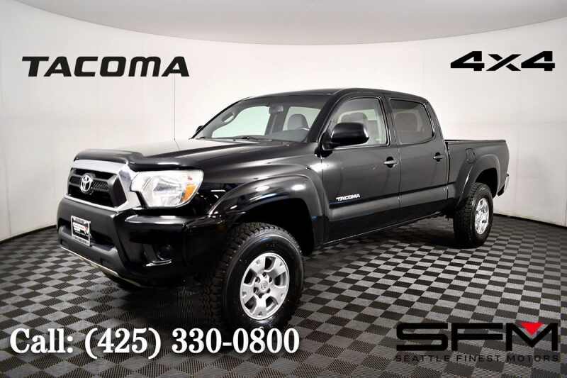 Our athletic low mile 2012 Toyota Tacoma Double Cab 4X4 shown in Black has been described as a muscle truck meets sports car. Powered by a 4.0 Liter V6 that offers 236hp paired to a 5 Speed Automatic transmission. This Four Wheel Drive scores nearly 21mpg on the road, making the Tacoma more nimble than some sports cars. You can quickly push the Tacoma to its limits with confidence! Our Tacoma shows off the 16-inch alloy wheels that accent the head-turning stance of this truck. You'll appreciate a composite bed-liner and a bed utility rail system. Once inside our Tacoma, you'll notice upgraded seating on front bucket seats and a premium audio system with available satellite radio, Bluetooth, and iPod input. Safety is always a priority, and our Toyota is equipped with ABS, electronic brake force distribution, brake assist, vehicle stability control, and traction control. This agile Tacoma will impress you with its prowess for work or play. Save this Page and Call for Availability. We Know You Will Enjoy Your Test Drive Toward Ownership! . All prices are exclusive of government fees and taxes, finance charges, dealer documentation fees, and any emission testing charges. A theft recovery device is installed in all our vehicles, and there is an additional cost for this feature. The interior/exterior protection plan is applied to some of our vehicles, and additional fees will apply. The listed price for vehicles does not include additional charges such as license, title, registration fees, state or local taxes, smog fees, credit investigation fees, optional credit insurance, physical damage or liability insurance, or delivery fees. While we try to make sure that all prices posted here are accurate at all times, we cannot be responsible for typographical and other errors, Including those related to the vehicle option list that may appear on the site.We strongly recommend verifying all details indepently. We make every effort to provide you the most accurate, up-to-the-minute information however it is your responsibility to verify with the Dealer that all details listed are accurate. We are not responsible for the accuracy of information reported by third-party platforms like Carfax or Autocheck. Please be aware that advertised prices and available quantities are subject to change without notice. All rates and offers are dependent on bank approval, which can vary based on your credit and the vehicle. . Advertised prices and available quantities are subject to change without notice. All rates and offers are dependent on bank approval, which varies based on applicant's credit as well as the vehicle.