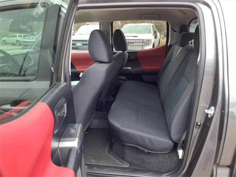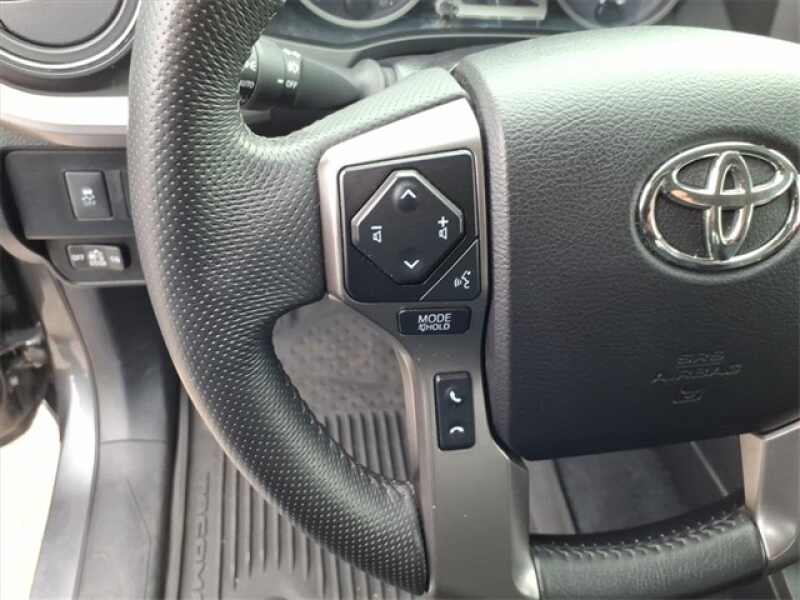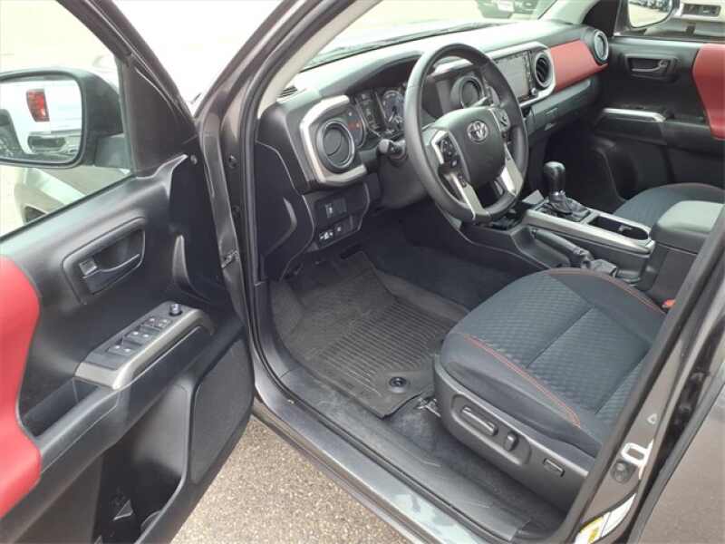 THE 2021 TOYOTA TACOMA SR5 4X4 DOUBLE CAB FEATURES A COMFORTABLE BLACK FABRIC INTERIOR WITH RED ACCENT STITCHING, A FULL CENTER CONSOLE, UNDERSEAT STORAGE, WI-FI CONNECT, MANUAL TILT/TELESCOPING STEERING COLUMN, AND CONVENIENCES LIKE CRUISE CONTROL, DISTANCE PACING, AND TOYOTAS ENTUNE AUDIO PLUS UPGRADE. POWER COMES FROM THE 3.5L V6 PAIRED WITH A 6-SPEED AUTOMATIC AND PART-TIME 4WD, ALONG WITH A CLASS IV TOW HITCH, TRAILER SWAY CONTROL, HILL DESCENT CONTROL, AND TACOMAS DURABLE SUSPENSION WITH DOUBLE WISHBONE FRONT AND LEAF-SPRING REAR DESIGN. EXTERIOR FEATURES INCLUDE 16 DARK GRAY ALLOY WHEELS, CHROME BUMPER, PROJECTOR HEADLAMPS WITH AUTOMATIC HIGH BEAMS, A COMPOSITE BED WITH UNDER-BED STORAGE, AND TSS-P SAFETY TECHNOLOGIES INCLUDING LANE DEPARTURE ALERT AND PRE-COLLISION SYSTEM.