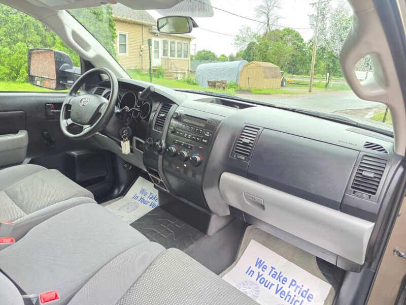 2010 TOYOTA TUNDRA 4X4 CAME FROM NEW JERSEY WITH 8 FEET LONG BED, CLEAN CARFAX REPORT, 1 0WNER RUNS AND DRIVES SMOOTHLY WELL WITH CLIMAT CONTROL, CLOTH SEATS, POWER SEATS, 3 SEATS, CLEAN INSIDE AND OUTSIDE , AUTOMATIC TRANSMISSION, V8 AND 5.7L WITH ONLY 111.000 MILES AND COME WITH CLEAN TITLE AND 8 FT LONG BED. ASKING PRICE $18'899 FINANCING IS AVAILABLE FOR EVERYONE. Here are some works we have done. ALL 4 SET OF TIRES ARE GOOD. WE REPLACED A BRAND NEW BATTERY. WE REPLACED CALIPER. WE REPLACED BRAKES AND ROTORS. WE REPLACED THE ABS SENSOR. WE REPLACED OXYGEN SENSOR. WE REPLACED FRESH SYNTHETIC ENGINE OIL. WE REPLACED ENGINE AIR FILTER. WE REPLACED CABIN FILTER. STOP OUT FOR A TEST DRIVE ON THIS! Well maintained and super clean! This Tundra will get you excellent fuel economy! Spoiler, cd player, cruise control, electronic stability control, daytime running lights. NICE CAR! AM/FM Stereo, auxiliary Audio