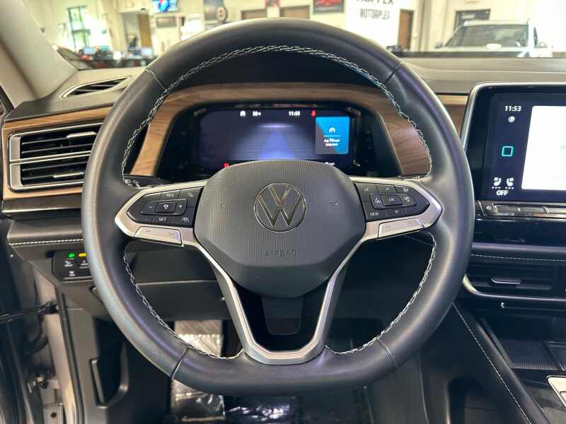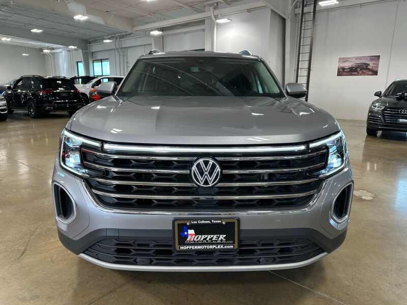 2024 Volkswagen Atlas 2.0T SE w/Technology Silver Mist Metallic 4D Sport Utility FWD 8-Speed Automatic with Tiptronic 2.0L TSI 3.60 Axle Ratio, 3rd row seats split-bench, 4-Wheel Disc Brakes, 6 Speakers, ABS brakes, Air Conditioning, Alloy wheels, AM/FM radio SiriusXM with 360L, Auto-dimming Rear-View mirror, Automatic temperature control, Brake assist, Bumpers body-color, Compass, Delay-off headlights, Driver door bin, Driver vanity mirror, Dual front impact airbags, Dual front side impact airbags, Electronic Stability Control, Emergency communication system VW Car-Net Safe & Secure 5-year, Exterior Parking Camera Rear, Four wheel independent suspension, Front anti-roll bar, Front Bucket Seats, Front Center Armrest, Front dual zone A/C, Front fog lights, Front reading lights, Fully automatic headlights, Heated door mirrors, Heated front seats, Heated steering wheel, Heated/Actively Ventilated Front Bucket Seats, Illuminated entry, Low tire pressure warning, Occupant sensing airbag, Outside temperature display, Overhead airbag, Overhead console, Panic alarm, Passenger door bin, Passenger vanity mirror, Perforated V-Tex Leatherette Seating Surfaces, Power door mirrors, Power driver seat, Power Liftgate, Power steering, Power windows, Radio data system, Radio MIB3 Composition Media, Rain sensing wipers, Rear air conditioning, Rear anti-roll bar, Rear reading lights, Rear seat center armrest, Rear window defroster, Rear window wiper, Remote keyless entry, Security system, Speed control, Speed-sensing steering, Split folding rear seat, Spoiler, Standard Suspension, Steering wheel mounted audio controls, Tachometer, Telescoping steering wheel, Tilt steering wheel, Traction control, Trip computer, Turn signal indicator mirrors, Variably intermittent wipers, Ventilated front seats, Wheels 20 2-Tone Machined Alloy.