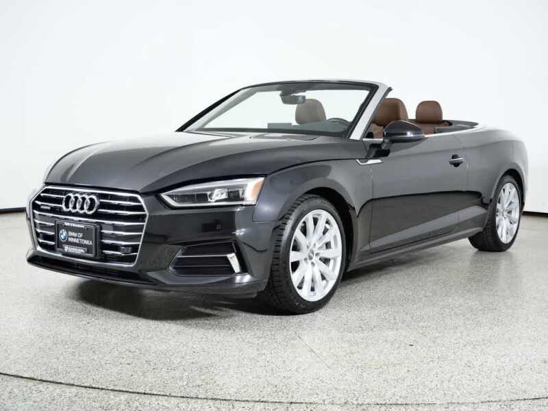 Description: Nice Local Trade, Clean Carfax, A5 2.0T Premium Plus quattro, 2D Convertible, 2.0L 4-Cylinder TFSI, 7-Speed Automatic S tronic, quattro, Mythos Black Metallic/Black Roof, Nougat Brown w/Leather Seating Surfaces, 4-Wheel Disc Brakes, ABS brakes, Audi Side Assist, Automatic temperature control, Bang & Olufsen Sound System w/3D Sound, Brake assist, Co...Features:- - 4 Cylinder Engine