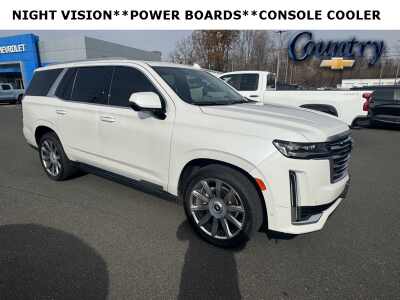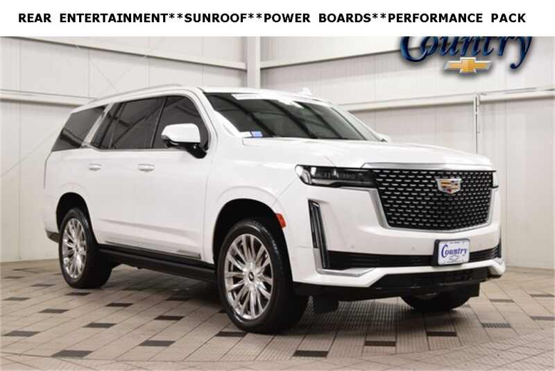 Description: 2022 Cadillac Escalade Premium Luxury Crystal White Tricoat 4WD 6.2L V8 10-Speed Automatic4WD, Brandy With Very Dark Atmosphere Accents Leather, Enhanced Automatic Emergency Braking, Heated & Ventilated Driver & Front Passenger Seats, Illuminated entry, Lane Change Alert w/Side Blind Zone Alert, Power Panoramic Tilt-Sliding Sunroof, Rear Cross Traf...Features:- - Navigation System