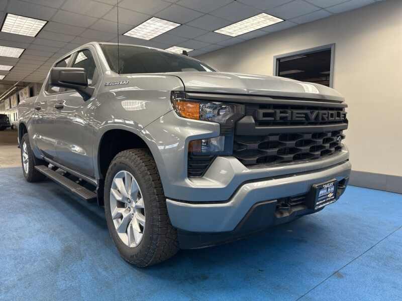 Description: Sterling Gray Metallic 2025 Chevrolet Silverado 1500 Custom 4WD 8-Speed Automatic 2.7L I4 Turbocharged DOHC 16V LEV3-SULEV30 310hp Silverado 1500 Custom, 4D Crew Cab, 2.7L I4 Turbocharged DOHC 16V LEV3-SULEV30 310hp, 8-Speed Automatic, 4WD, Sterling Gray Metallic, Jet Black Premium Cloth, Custom Convenience Package, Custom Value Package, Electric R...0- Sale Price: $47,480