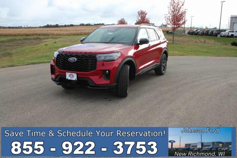 Description: Rapid Red Metallic Tinted Clearcoat 2026 Ford Explorer ST-Line 4WD 10-Speed Automatic 2.3L EcoBoost I-4 4WD, 110V/150W AC Power Outlet, 2nd Row Heated Seats, Ambient Lighting, Auto-Dimming Interior Rear-View Mirror, Equipment Group 300A Standard Package, Manual-Folding Sideview Mirrors, Memory Driver's Seat, Performance Brakes, Premium Package, Rai...Features:- - Navigation System