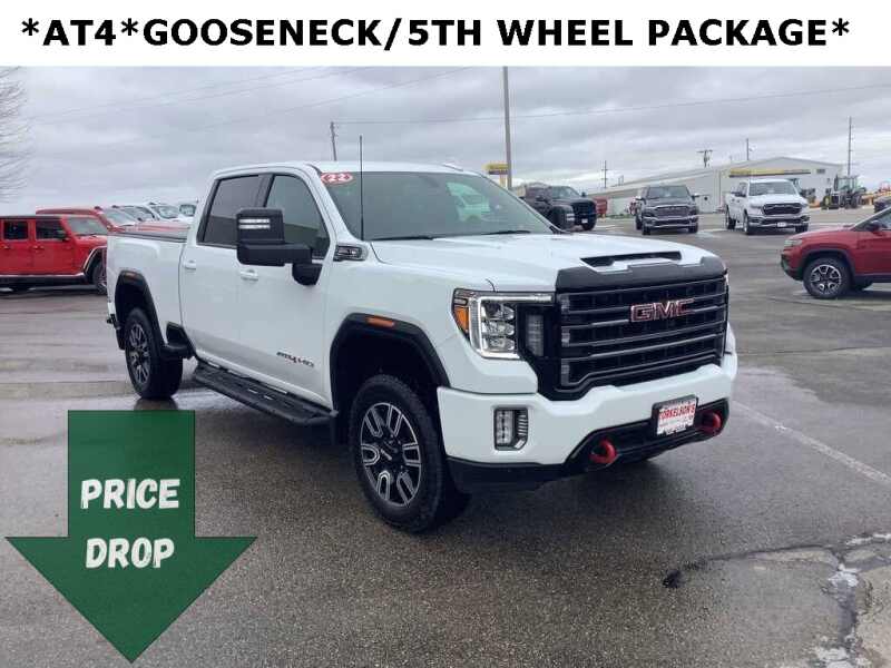 Description: 2022 GMC Sierra 2500HD AT4 Summit White 4WD 6.6L V8 6-Speed Automatic6-Speed Automatic, 4WD, Jet Black With Kalahari Accents Leather, Forward Collision Alert, Heated Driver & Front Outboard Passenger Seats, Illuminated entry, Lane Change Alert w/Side Blind Zone Alert, Rear Cross Traffic Alert, Remote keyless entry, Tilt steering wheel, Ventilated f...Features:- - Gooseneck/5th Wheel Package