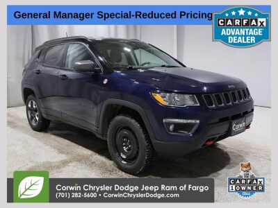 Description: EMBRACE THE SHORTEST MONTH OF THE YEAR WITH CORWIN CHRYSLER DODGE JEEP RAM OF FARGO! WE HAVE SAVINGS ON ALL OF OUR PRE-OWNED VEHICLES AVAILABLE!!WE HAVE ONE OF THE LARGEST SELECTIONS OF INVENTORIES IN OUR AREA AT ONE SINGLE LOCATION!! Jazz Blue Pearlcoat 2018 Jeep Compass Trailhawk FACTORY CERTIFIED 4D Sport Utility 4WD 2.4L I4 Certified. CARFAX On...Features:- - Leather Interior Group