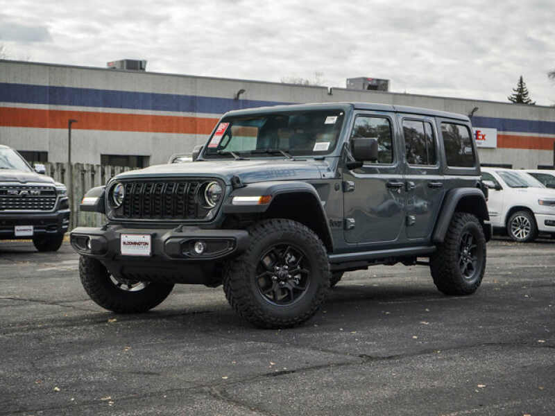 Description: Pj5 2026 Jeep Wrangler Willys 4WD 8-Speed Automatic 2.0L I4 DOHC Clean Carfax, 8yr/100,000 miles Limited Powertrain Warranty, Auto High Beam Headlamp Control, Blind Spot & Cross Path Detection, Injection Molded Black Rear Bumper, LED Taillamps, ParkSense Rear Park Assist System, Safety Group.Experience the Easy Way to Drive At Bloomington Chrysler ...Features:- - Safety Group