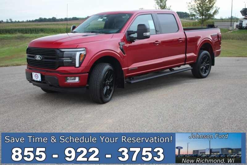 Description: Red Metallic 2025 Ford F-150 Lariat 4WD 10-Speed Automatic 3.5L PowerBoost Full-Hybrid V6 3.5L PowerBoost Full-Hybrid V6, 4WD, 2nd Row Heated Seats, 4 Pickup Box Tie-Down Plates, 4x4 FX4 Off-Road Bodyside Decal, ActiveX Trimmed Bucket Seats (B), Ambient Lighting - Ice Blue Color Only, Bed Utility Package, Black Exterior Badging, Black Grille, Black...Features:- - Navigation system Connected Navigation