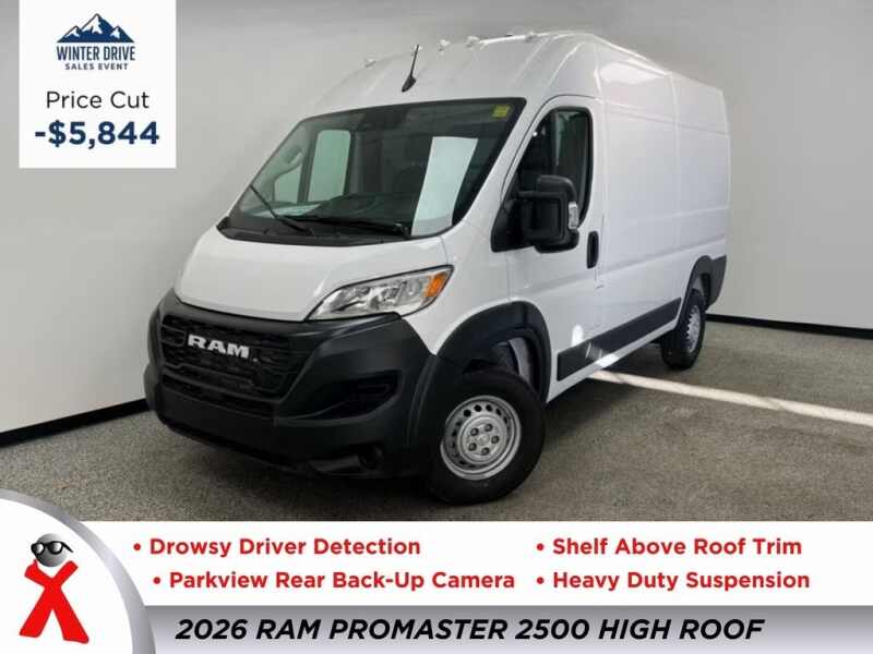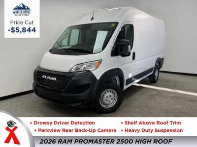 Description: $2,000 off MSRP!Bright White Clearcoat 2025 Ram ProMaster 2500 High Roof FWD 9-Speed 948TE Automatic 3.6L V6 24V VVTThis ProMaster 2500 High Roof is nicely equipped with Power Group (100 Amp Battery, 115V Auxiliary Power Outlet, and 12V Rear Auxiliary Power Outlet), Quick Order Package 22B Tradesman w/Pass Seat (4-Way Manual Adjust Front Passenger ...Features:- - Power Group