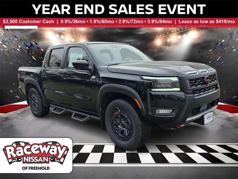 Description: Price includes $2500 - Nissan Customer Cash. Exp. 02/02/2026 2026 Nissan Frontier PRO-4X Super BlackFrontier PRO-4X, 4D Crew Cab, 3.8L DI DOHC 24V V6, 9-Speed Automatic with Overdrive, 4WD, Super Black, Steel Leather.Raceway Nissan of Freehold is proud to offer this wonderful 2026 Nissan Frontier a positively attractive Truck with the following F...Features:- - PRO Premium Package