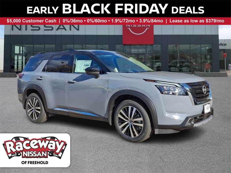 Description: Price includes $5000 - Nissan Customer Cash. Exp. 12/01/2025 2025 Nissan Pathfinder Platinum Solid Gray/Super Black4WD.Raceway Nissan of Freehold is proud to offer this beautiful 2025 Nissan Pathfinder an absolutely handsome SUV with the following Features Cargo Package (Cargo Area Protector, Cargo Net, and First Aid), 4WD, 13 Speakers, 3rd row s...Features:- - Navigation system NissanConnect with Navigation and Services
