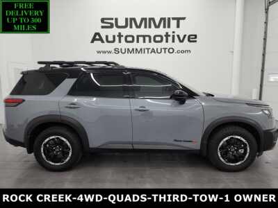 - 2024 Nissan Pathfinder Rock Creek ROCK CREEKQUADSTHIRDHEATED SEATSTOW PKG360 CAM1 OWNERDescription: WATCH A 4K VIDEO WALKAROUND OF THIS PATHFINDER!1 OWNER! CLEAN TITLE HISTORY!* 3.5 Liter V6 Engine, 295 Horsepower, 270 LB-FT Torque* Rock Creek Package* 9 Speed Automatic Transmission with Center Console Shifter* Intelligent 4x4 Four Wheel Drive 4WD with Drive and Terrain Mode Selector* Reverse Backup Camera Rearview Camera* 360-Degree Surround Vie...Features:- - L94 ROCK CREEK AS FLOOR LINERS & CARGO AREA PROTECTOR