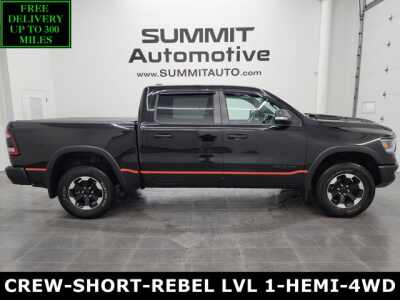 Description: 1 OWNER! CLEAN TITLE HISTORY! CLEAN CARFAX!* 5.7 Liter OHV V8 Hemi with Multiple Displacement System MDS Engine, 395 Horsepower* Full Four Door Crew Cab* Short Box 5 Foot 7 Inch 5' 7 Shortbox* Rebel Package* 8 Speed Automatic Transmission* 4x4 Push Button Four Wheel Drive 4WD* 4-Corner Air Ride Suspension* Reverse Backup Camera Rearview Camera* Dua...Features:- - BLACK LEATHER TRIM BUCKET SEATS W/REBEL LOGO -inc #1 Seat Foam Cushi...