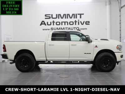 Description: * 6.7 Liter I6 Cummins High Output Diesel Engine, 430 Horsepower, 1,075 LB-FT Torque* Full Four Door Crew Cab* Long Box 8 Foot Longbox* Night Edition* Laramie Package* Level 2 Package* 8 Speed Automatic Transmission* 4x4 Push Button Four Wheel Drive 4WD* Auto Air Level Rear Air Suspension* Factory GPS Navigation System* Power Sunroof Moonroof Sun R...Features:- - BRIGHT WHITE CLEARCOAT