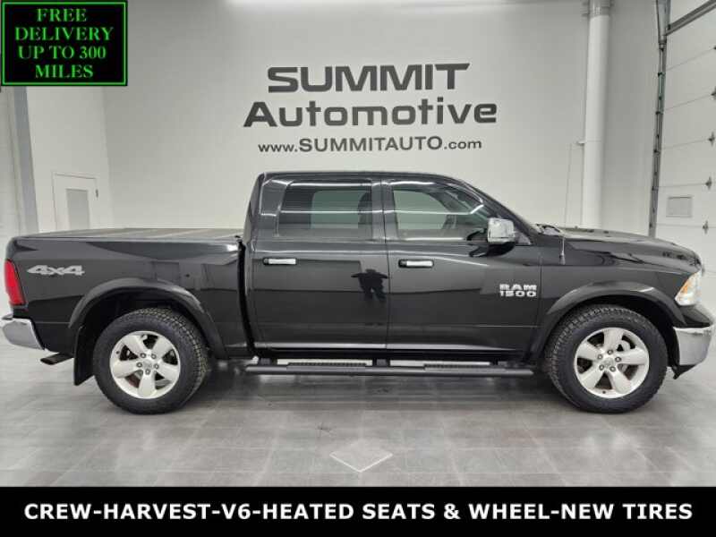 Description: WATCH A 4K WALKAROUND VIDEO OF THIS RAM!CLEAN TITLE HISTORY! NEW TIRES!* 3.6 Liter Pentastar DOHC V6 Engine, 305 Horsepower* Full Four Door Crew Cab* Short Box 5 Foot 7 Inch 5' 7 Shortbox* Harvest Edition SLT Package* 8 Speed Automatic Transmission* 4x4 Push Button Four Wheel Drive 4WD* Factory GPS Navigation System* Reverse Backup Camera Rearview ...Features:- - MONOTONE PAINT -inc Headlamp filler panels and door handles are black...