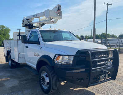 Description: 2015 Dodge Ram 5500HD bucket truckMiles 85,896 on odometerEngineDisplacement 6.7L L6 OHVCylinders 6Fuel type DieselTransmissionAutomaticChassisFour wheel driveAxles SingleSuspension SpringBrakes HydraulicGVWR 19,500 lbsInteriorAC, HeatCruise controlAuxiliary controlsFeaturesBedVersalift13' L x 94" WBoomVersaliftBoom type Art...Features:- - Air Conditioning