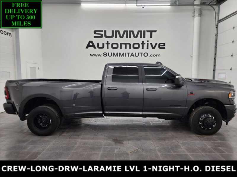 Description: WATCH A 4K WALKAROUND VIDEO OF THIS RAM!1 OWNER! CLEAN TITLE HISTORY!* 6.7 Liter I6 Cummins High Output Diesel Engine, 420 Horsepower, 1,075 LB-FT Torque* Full Four Door Crew Cab* Long Box 8 Foot Longbox* Dual Rear Wheel Dually DRW* Night Edition* Laramie Package* Level 1 Package* Tow Technology Package* 6 Speed AISIN Automatic Heavy Duty Transmiss...Features:- - QUICK ORDER PACKAGE 21H LARAMIE -inc Engine 6.7L I6 Cummins HO Turbo ...