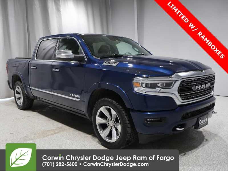 Description: HAPPY FALL FROM CORWIN CHRYSLER DODGE JEEP RAM OF FARGO!! WE HAVE GREAT SAVINGS ON ALL OF OUR PRE-OWNED VEHICLES AVAILABLE!! WE HAVE ONE OF THE LARGEST SELECTIONS OF INVENTORIES IN OUR AREA AT ONE LOCATION!! Recent Arrival! Priced below KBB Fair Purchase Price! Patriot Blue Pearlcoat 2019 Ram 1500 Limited 4D Crew Cab 4WD HEMI 5.7L V8 Multi Displace...Features:- - GPS Navigation