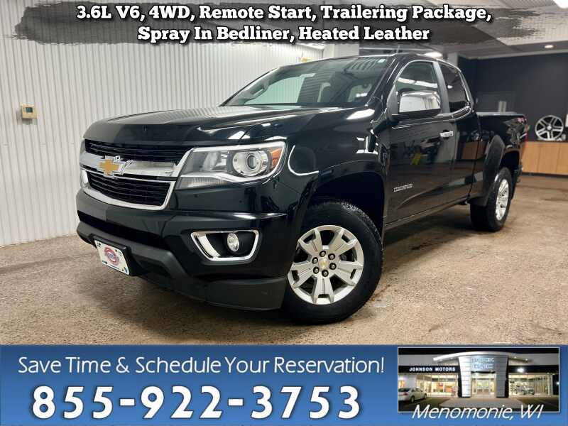 Description: 3.6L V6, 4WD, Remote Start, Trailering Package, Spray In Bedliner, Heated Leather.Price does not include sales tax, title, registration, or $299.95 service fee. KBB.com Best Resale Value Awards. Only 102,021 Miles! Scores 24 Highway MPG and 17 City MPG! This Chevrolet Colorado delivers a 3.6L V6 engine powering this Automatic transmission. WHEELS, ...Features:- - AUDIO SYSTEM CHEVROLET MYLINK 8 DIAGONAL COLOR TOUCH WITH AM/FM/SIRI...