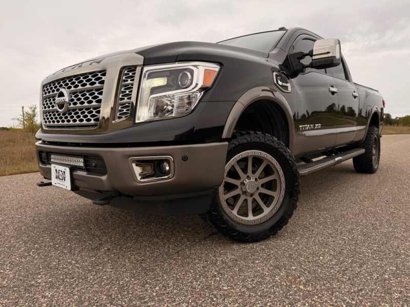 - 2017 Nissan Titan PLATINUM RESERVEDescription: -CarFax Certified Clean Title -5.0L Cummins V8 Diesel -4X4 Shift On The Fly -Aisin 6 Speed Automatic Transmission -20 Inch Black Rhino Wheels -Power Heated and Cooled Leather Seats -Rear DVD -Navigation -360 Camera -Trailer Tow Package -Integrated Trailer Brake Controller -Bed Liner -Tonneau Cover -Integrated Gooseneck Hitch -120V Power Outlet -LED...Features:- - Air Conditioning