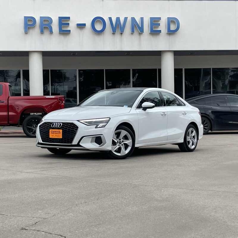 Description: A3 40 Premium, 4D Sedan, 2.0L 4-Cylinder TFSI, 7-Speed Automatic S tronic, FrontTrak, White, Black/Rock Gray Stitching w/Leather Seating Surfaces, ABS brakes, Alloy wheels, Audi Advanced Key, Audi Side Assist, Auto-Dimming Power Folding Exterior Mirrors, Auto-Dimming Rear-View Mirror, Convenience Package, Electronic Stability Control, Emergency com...0- Sale Price: $21,478